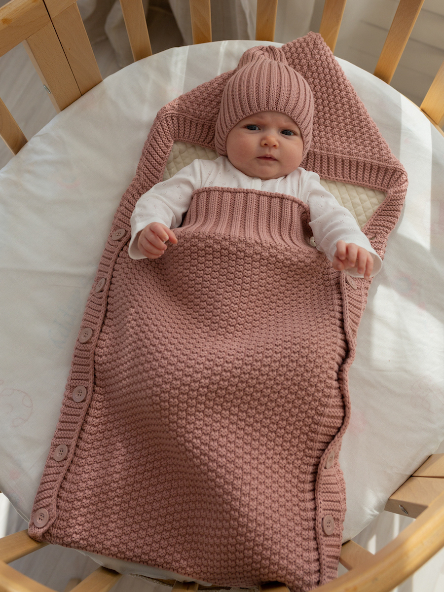 Стильный вязаный конверт на выписку для новорожденных. Мягкий и приятный он идеален для прогулок весной и летом. Подходит для прогулок в коляске, идеален в качестве подарка новорожденному. Для удобства, мы предусмотрели пуговицы по бокам. Внешняя и внутренняя части конверта сделаны из 100% ЭКО хлопка. Конверт сертифицирован по ГОСТ-Р.