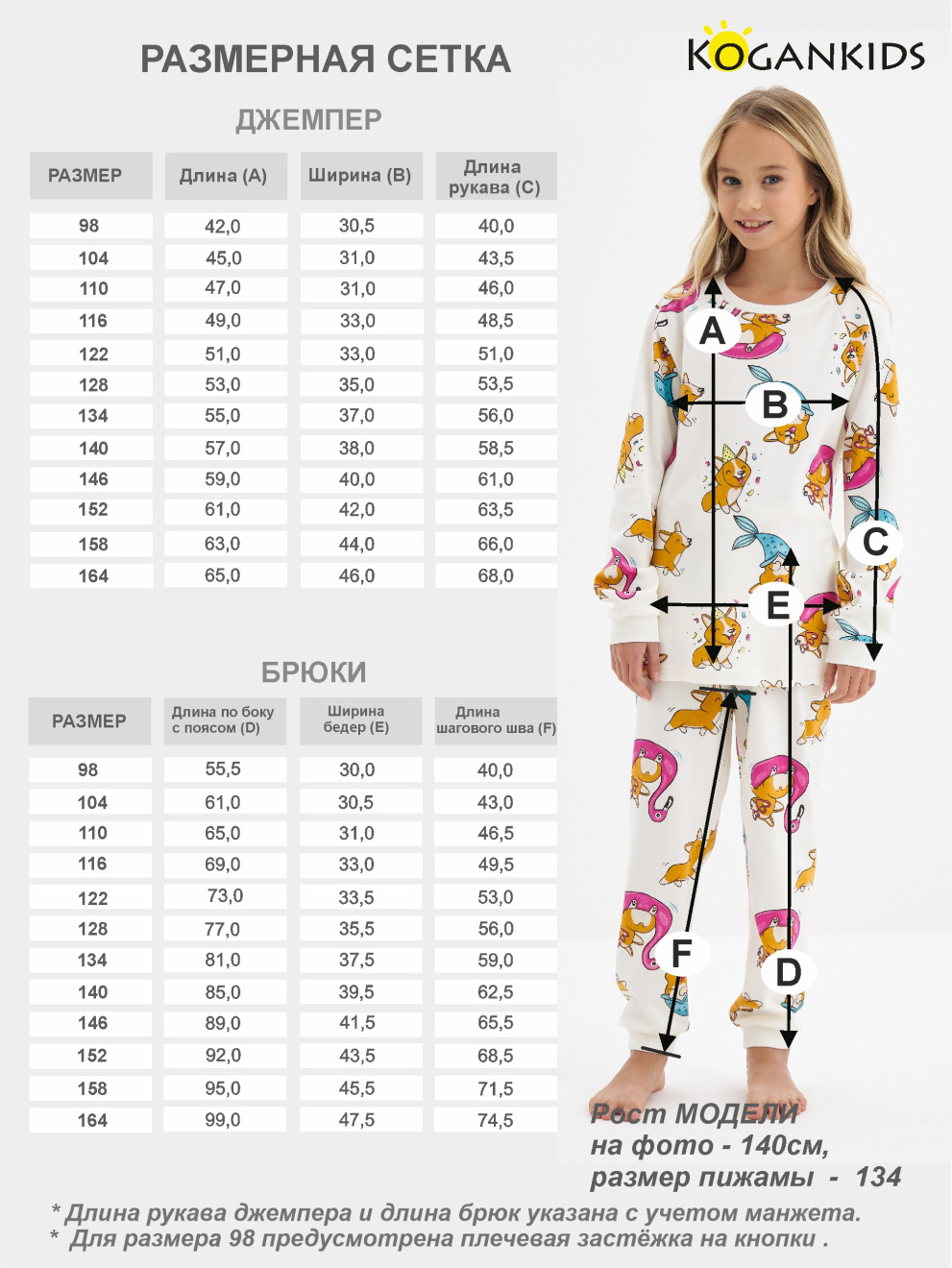 Пижама для девочки "корги" с длинным рукавом и брюками из интерлока