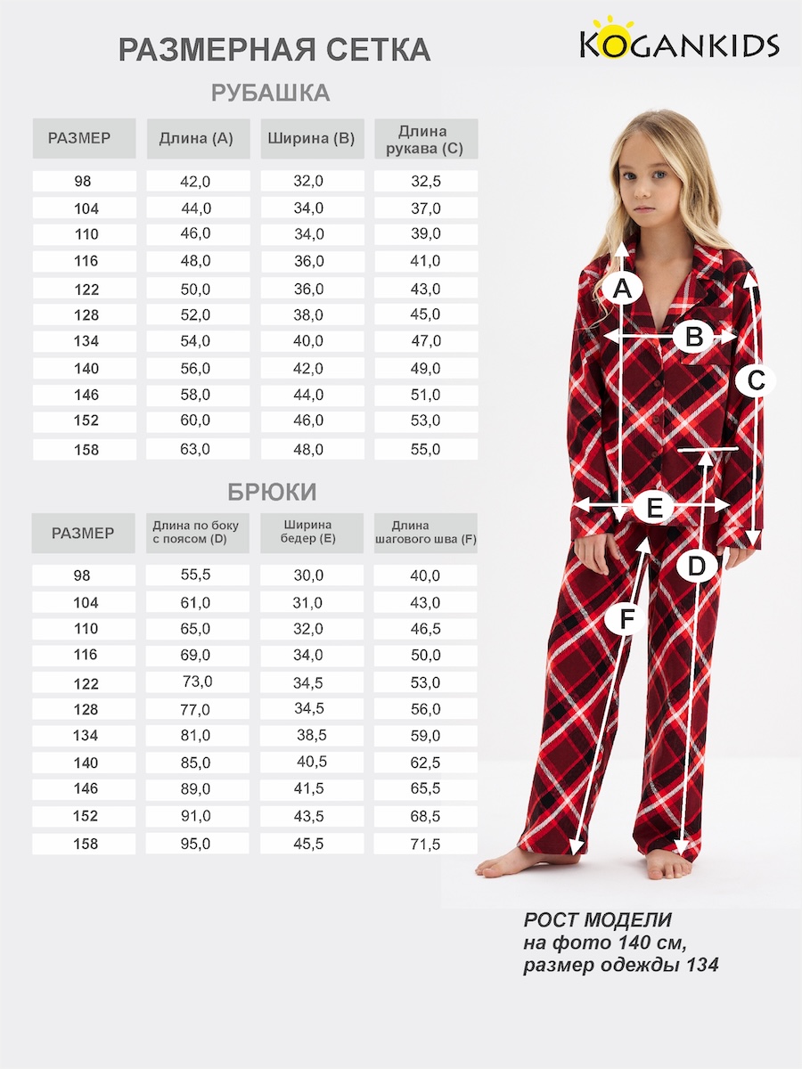 Пижама для детей в клетку, из кулирной глади с жакетом на застежке пуговицы с брюками
