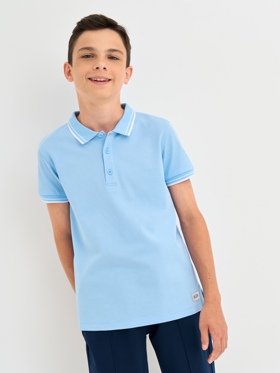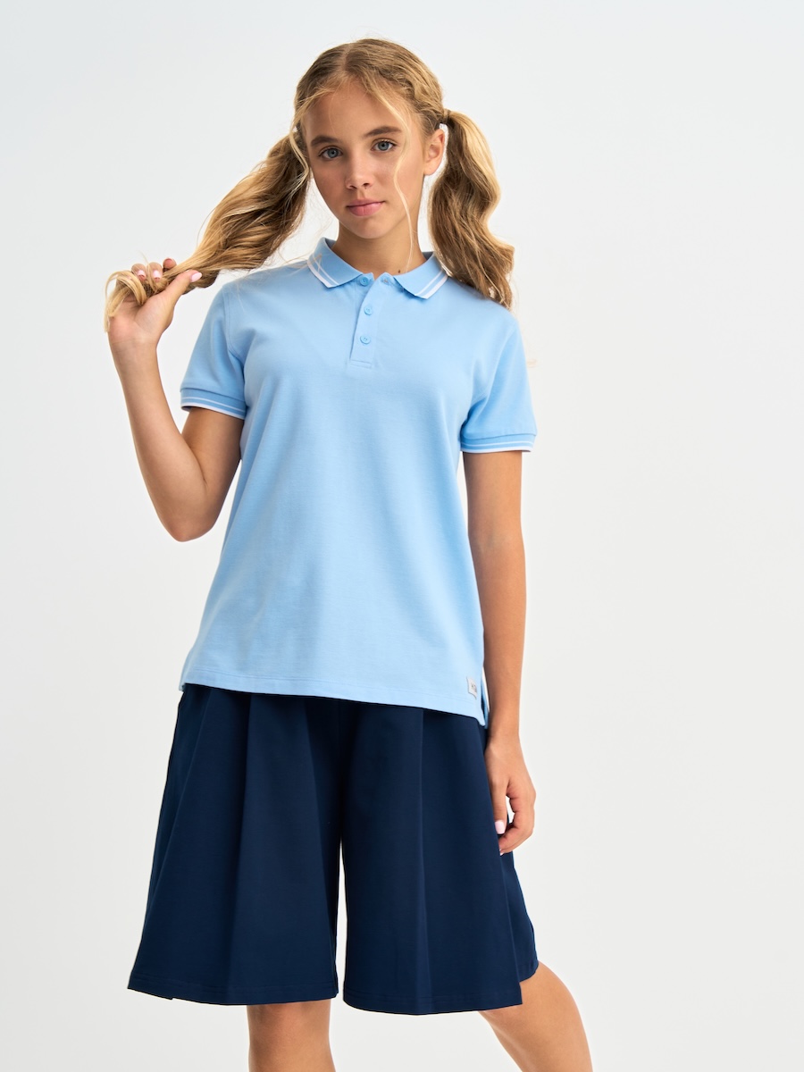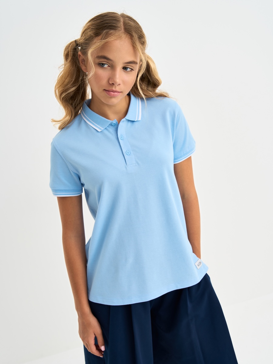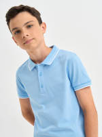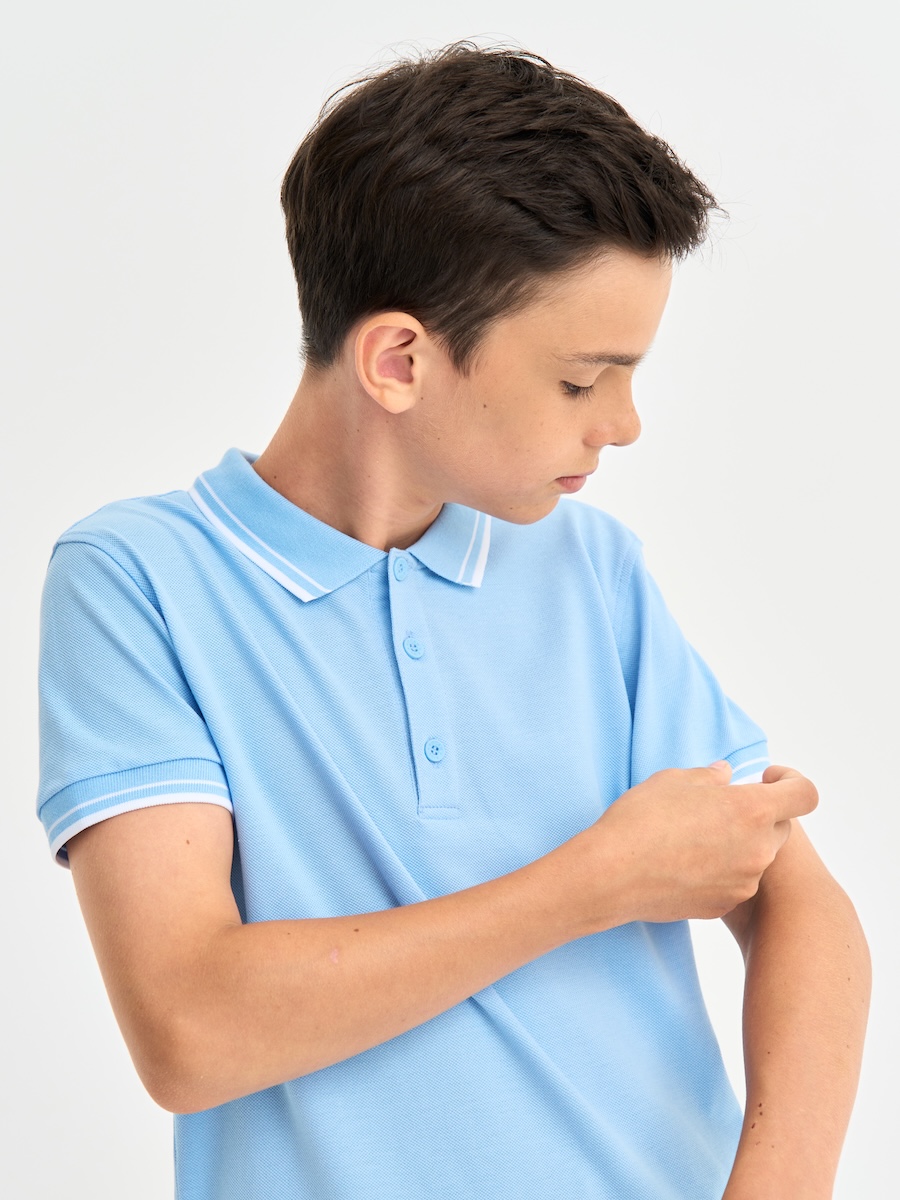 Футболка поло для детей и подростков, выполнена из пике, с застежкой на пуговицах, манжетами и воротником, по боком разрезы. Состав полотна 100% хлопок