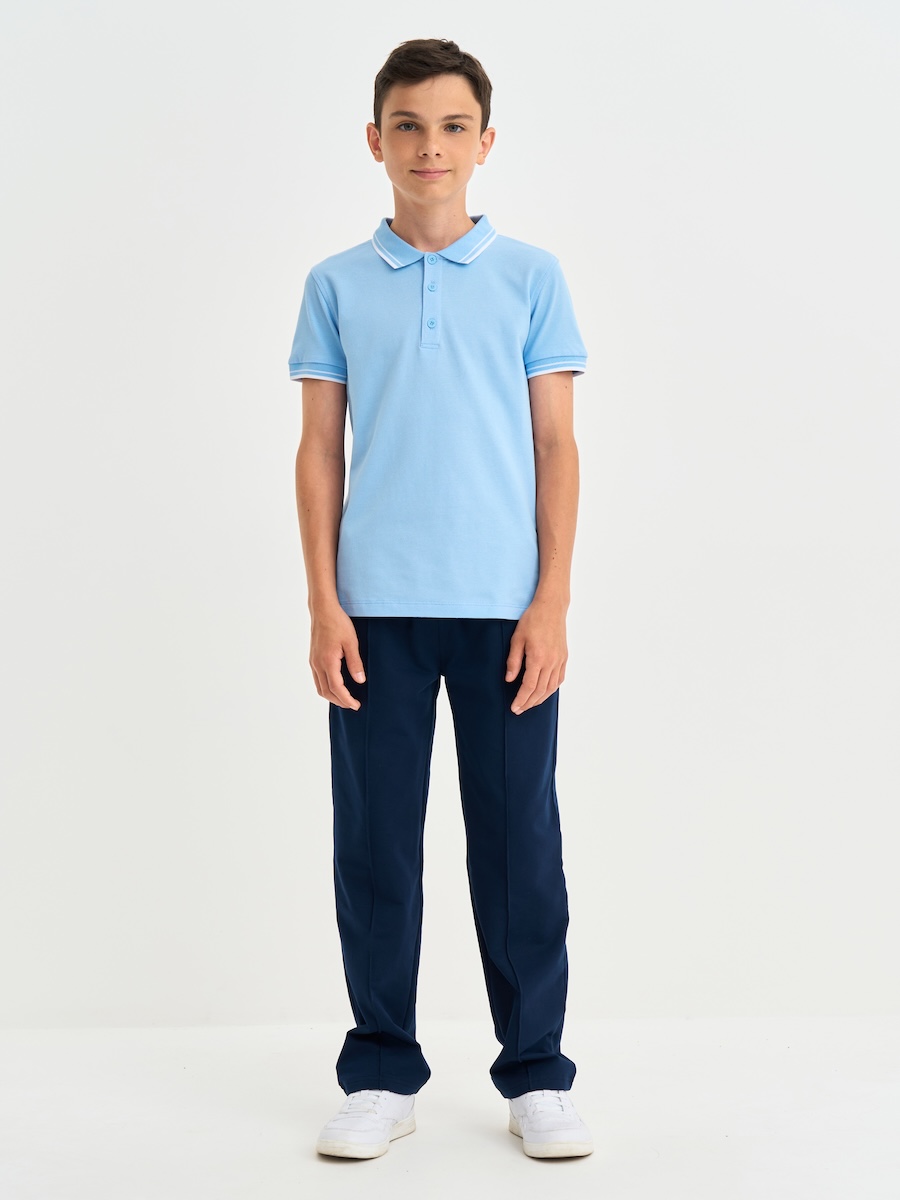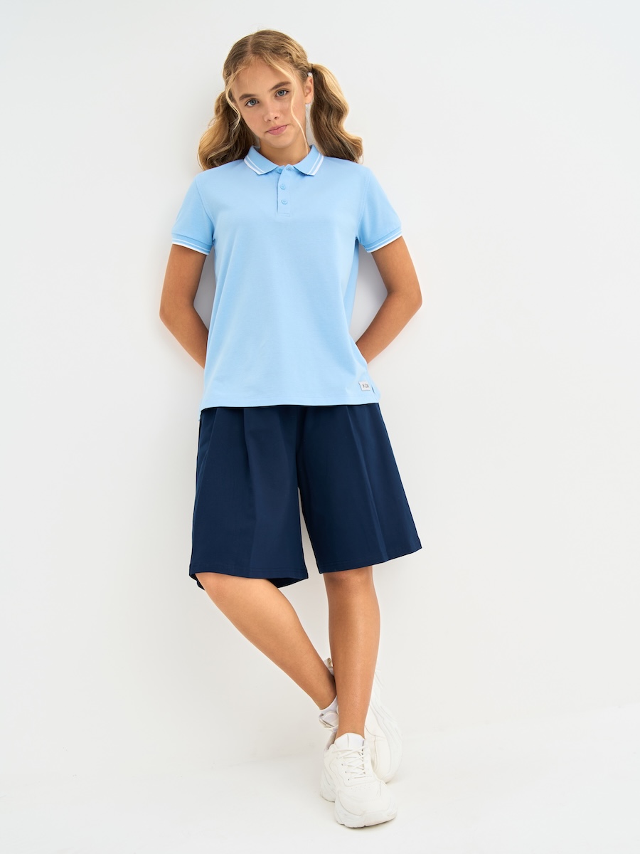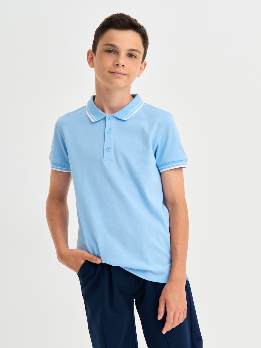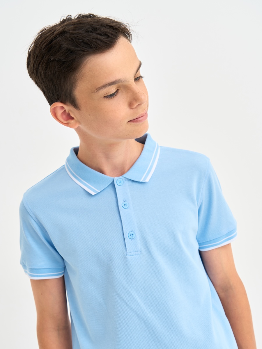 Футболка поло для детей и подростков, выполнена из пике, с застежкой на пуговицах, манжетами и воротником, по боком разрезы. Состав полотна 100% хлопок