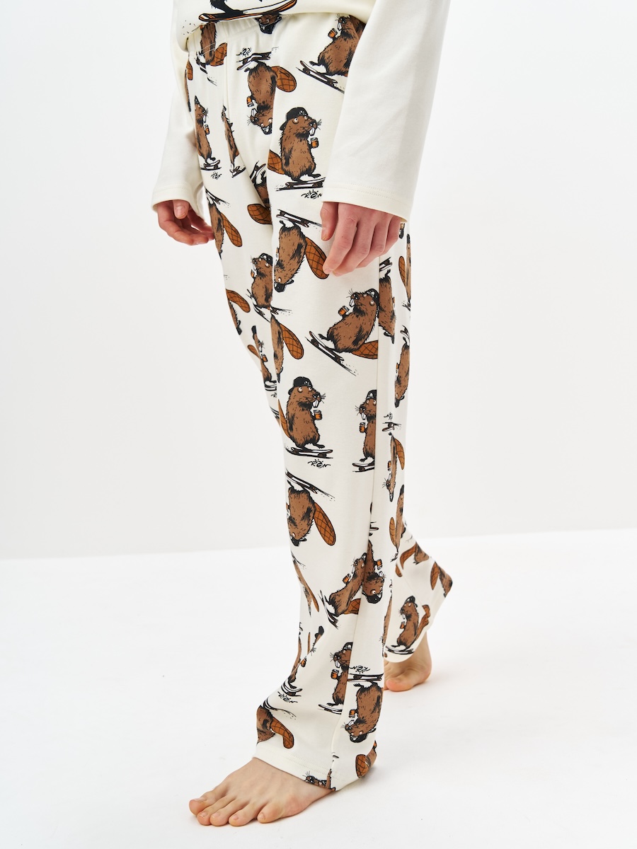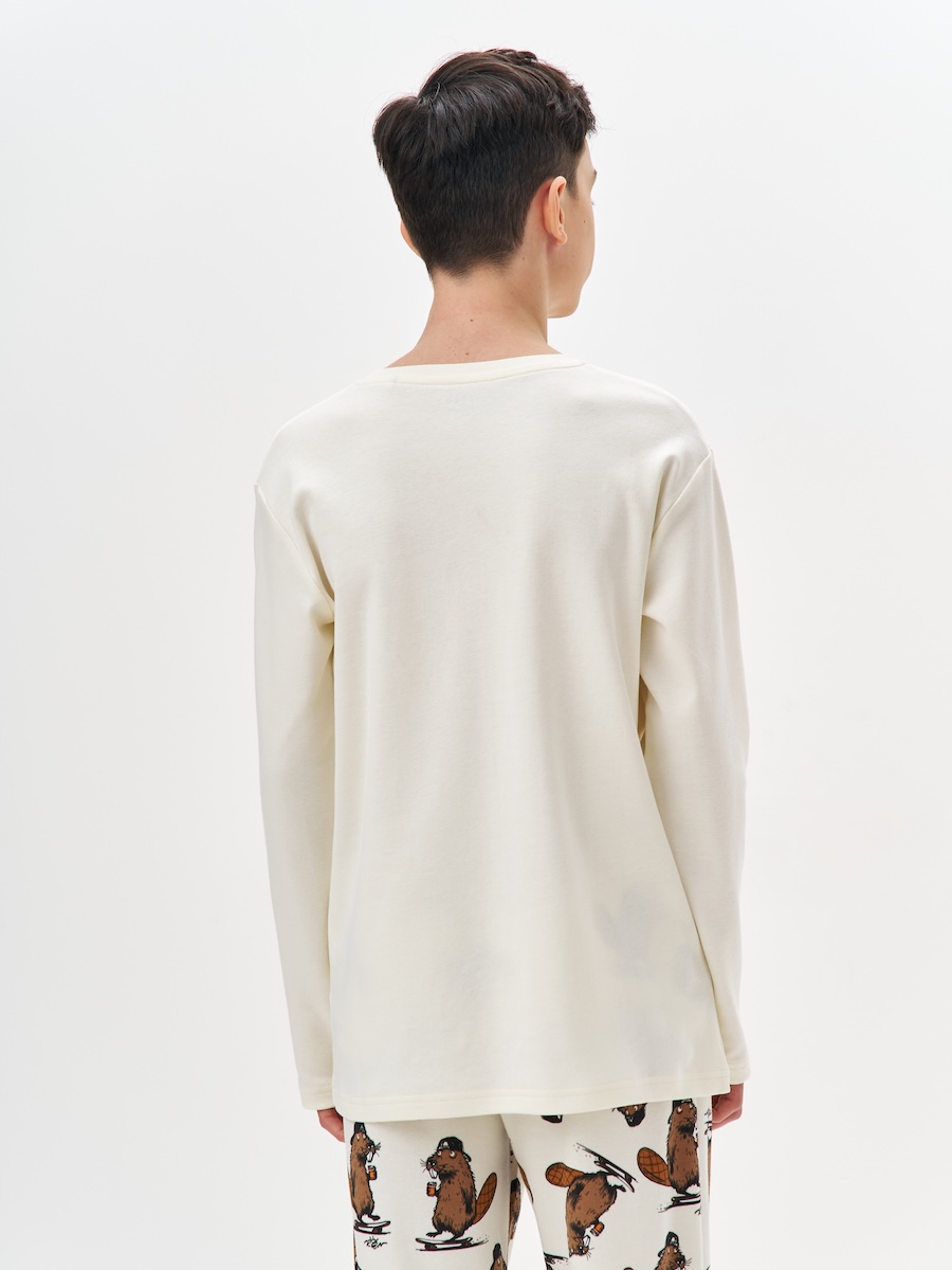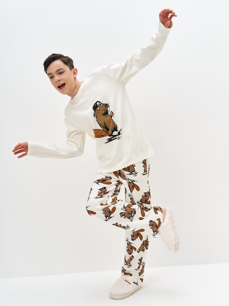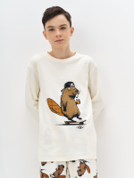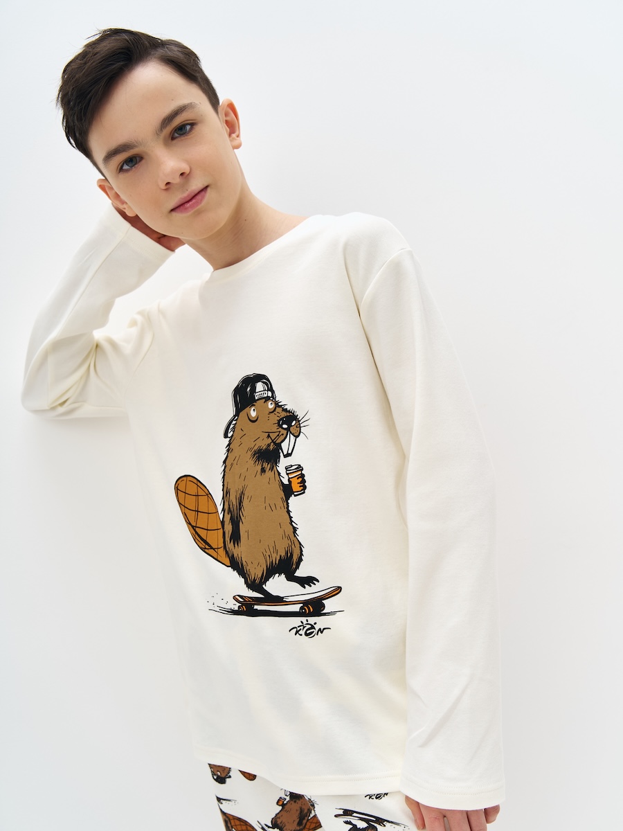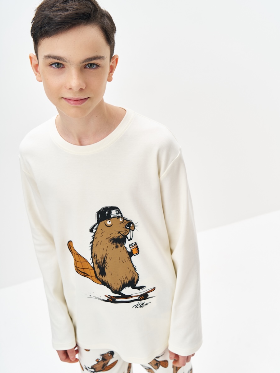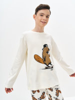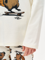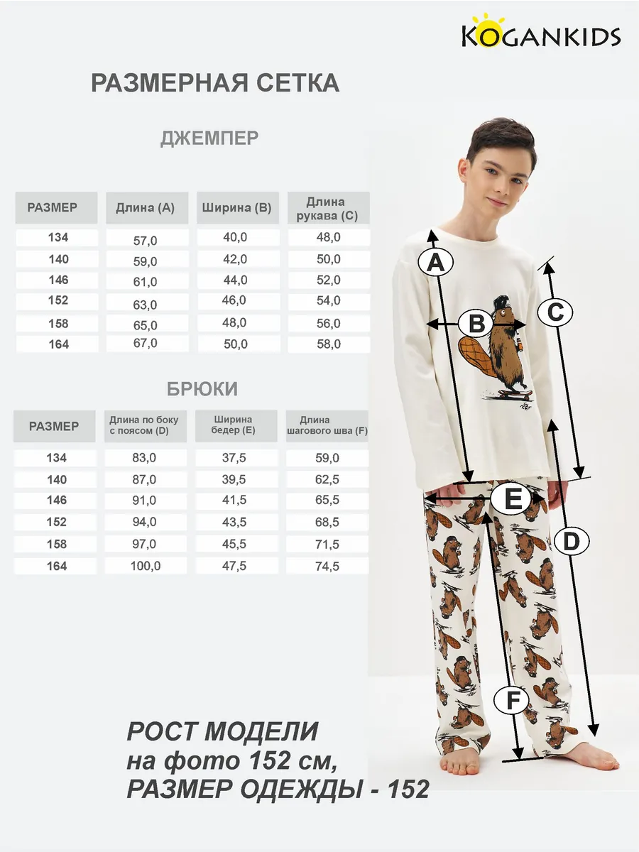 Пижама для мальчика с лонгсливом и широкими брюками с карманами. Выполнена из полотна интерлок 100% хлопок.