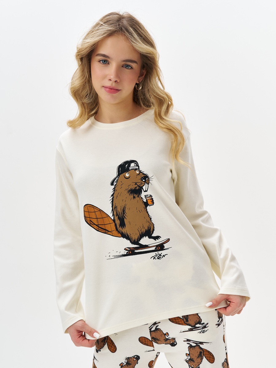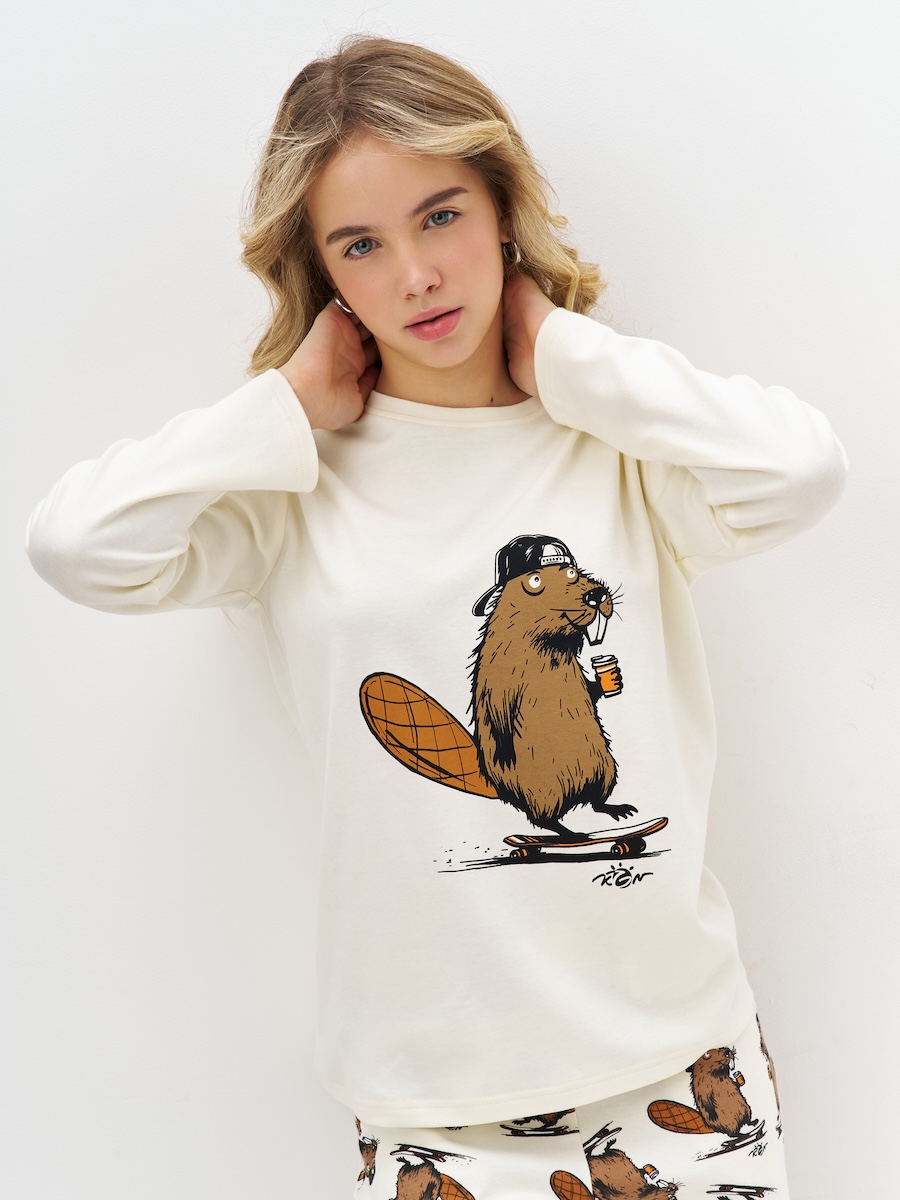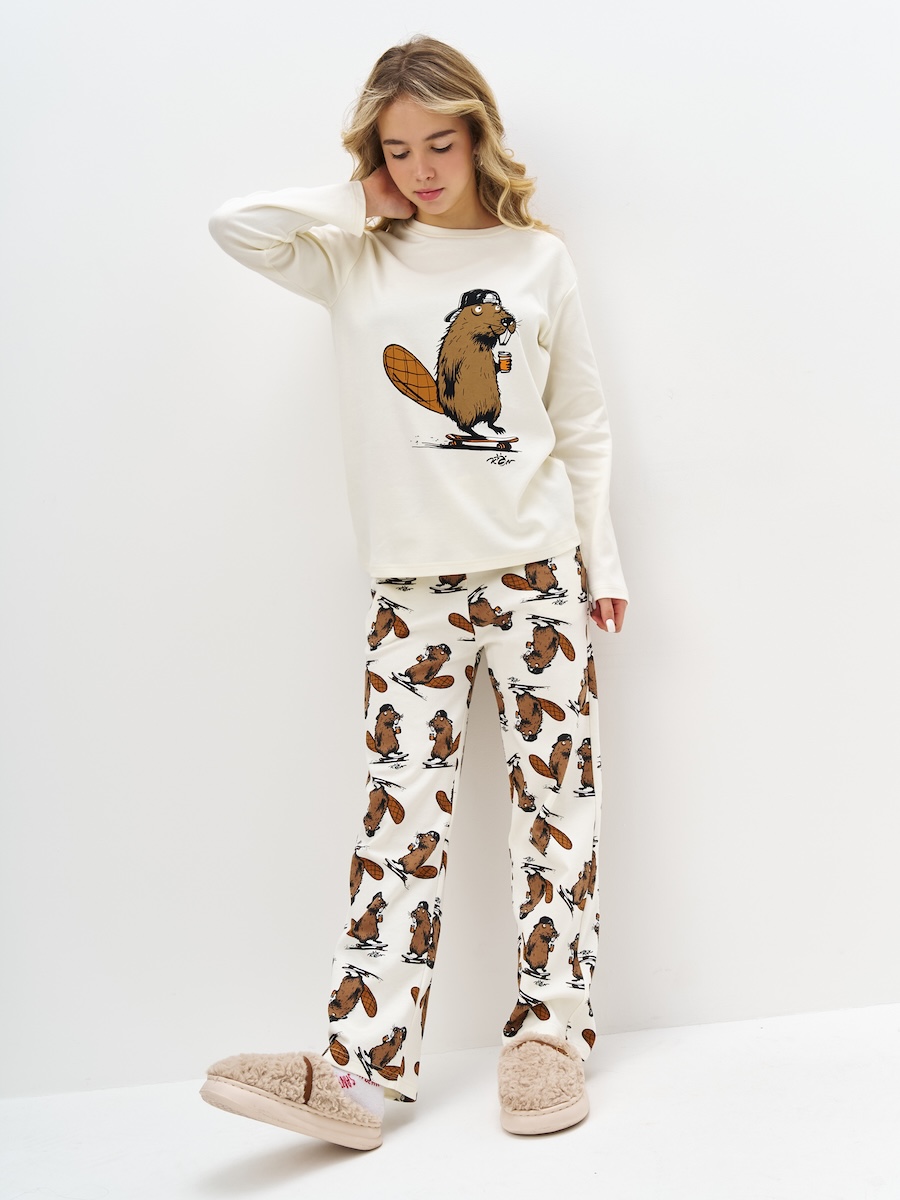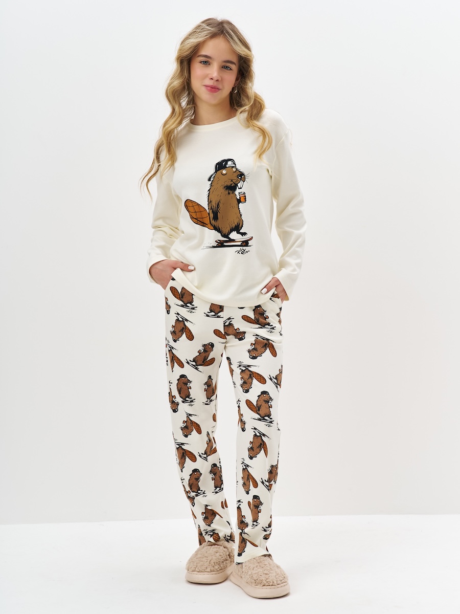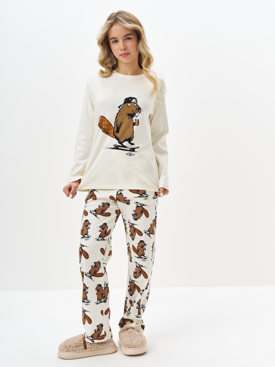 Пижама для мальчика с лонгсливом и широкими брюками с карманами. Выполнена из полотна интерлок 100% хлопок.