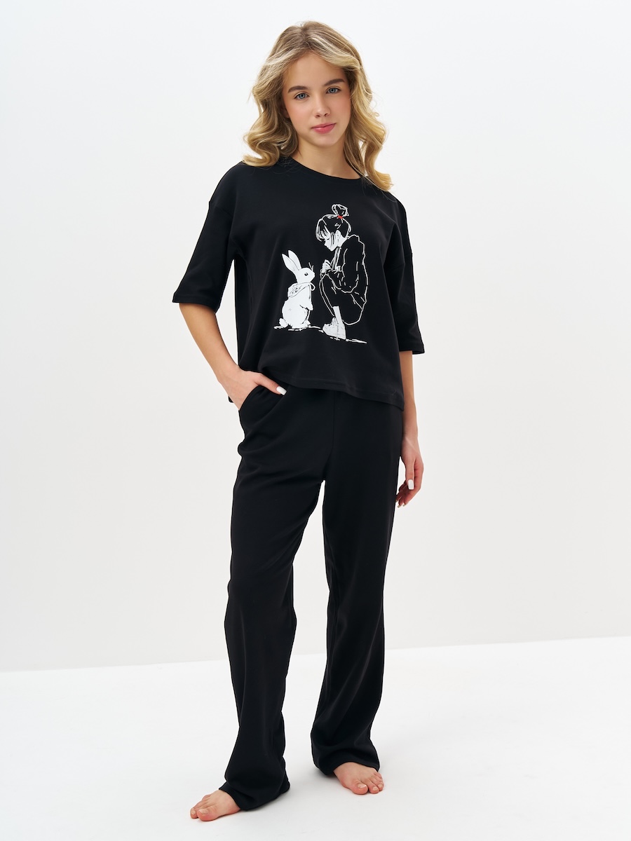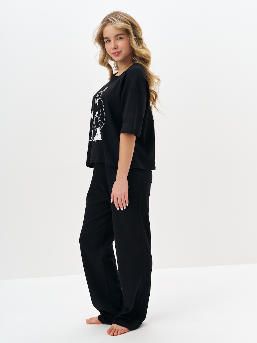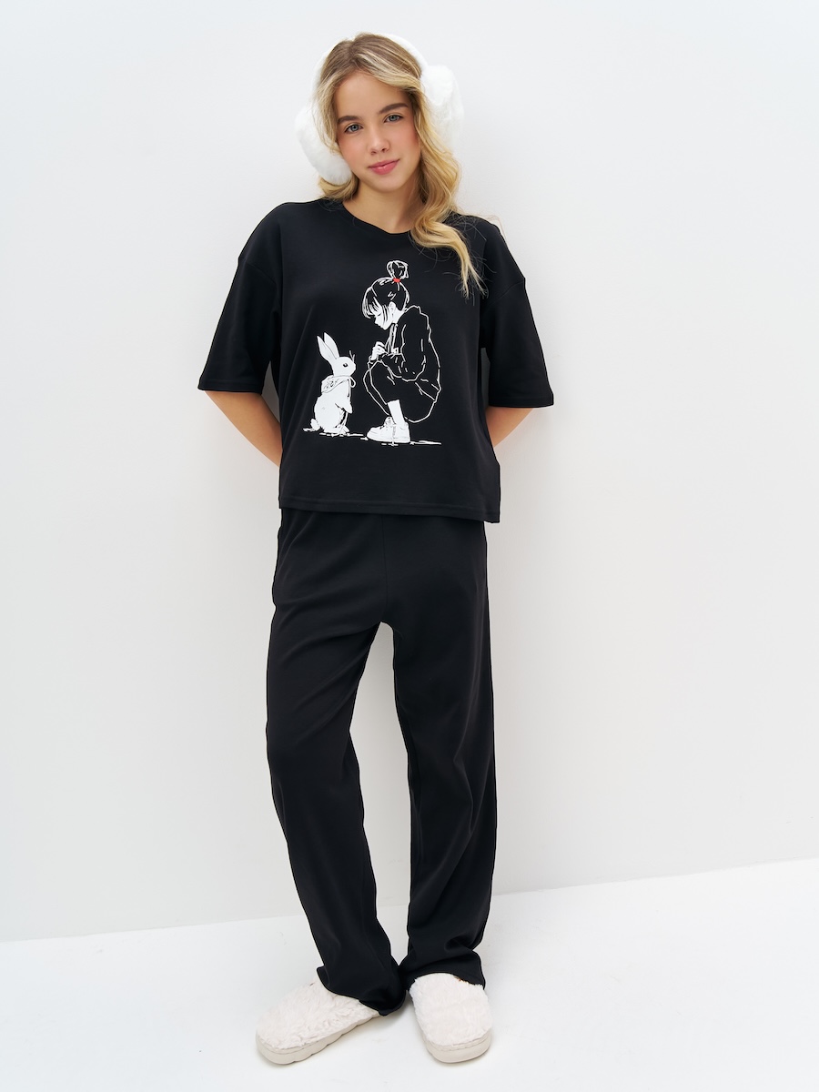 Черная пижама для девочки с принтом