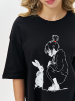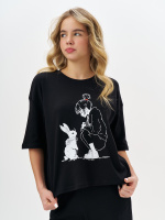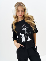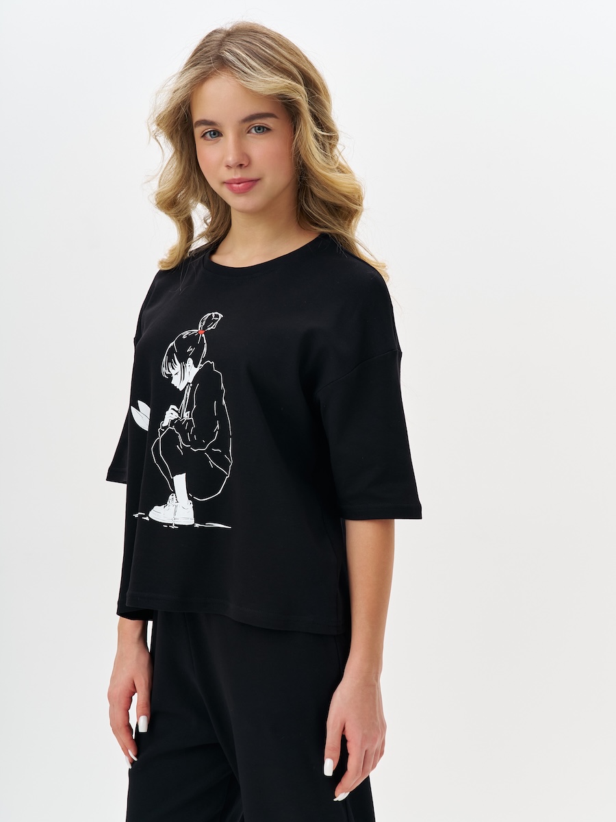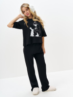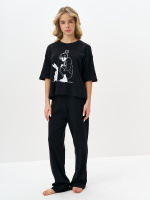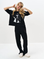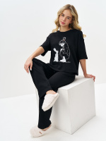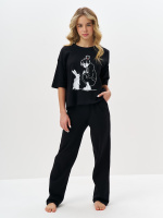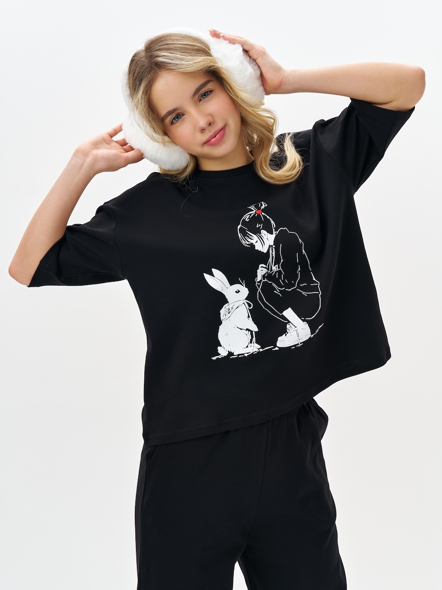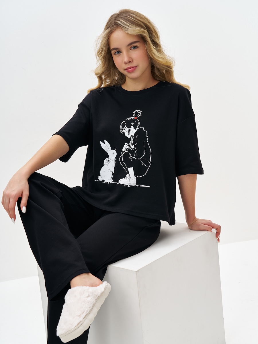 Черная пижама для девочки с принтом