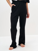 Пижама для девочки с укороченной футболкой и широкими брюками с карманами. Выполнена из полотна интерлок 100% хлопок