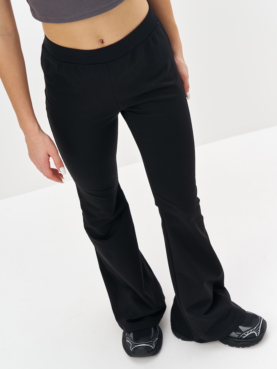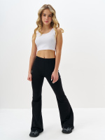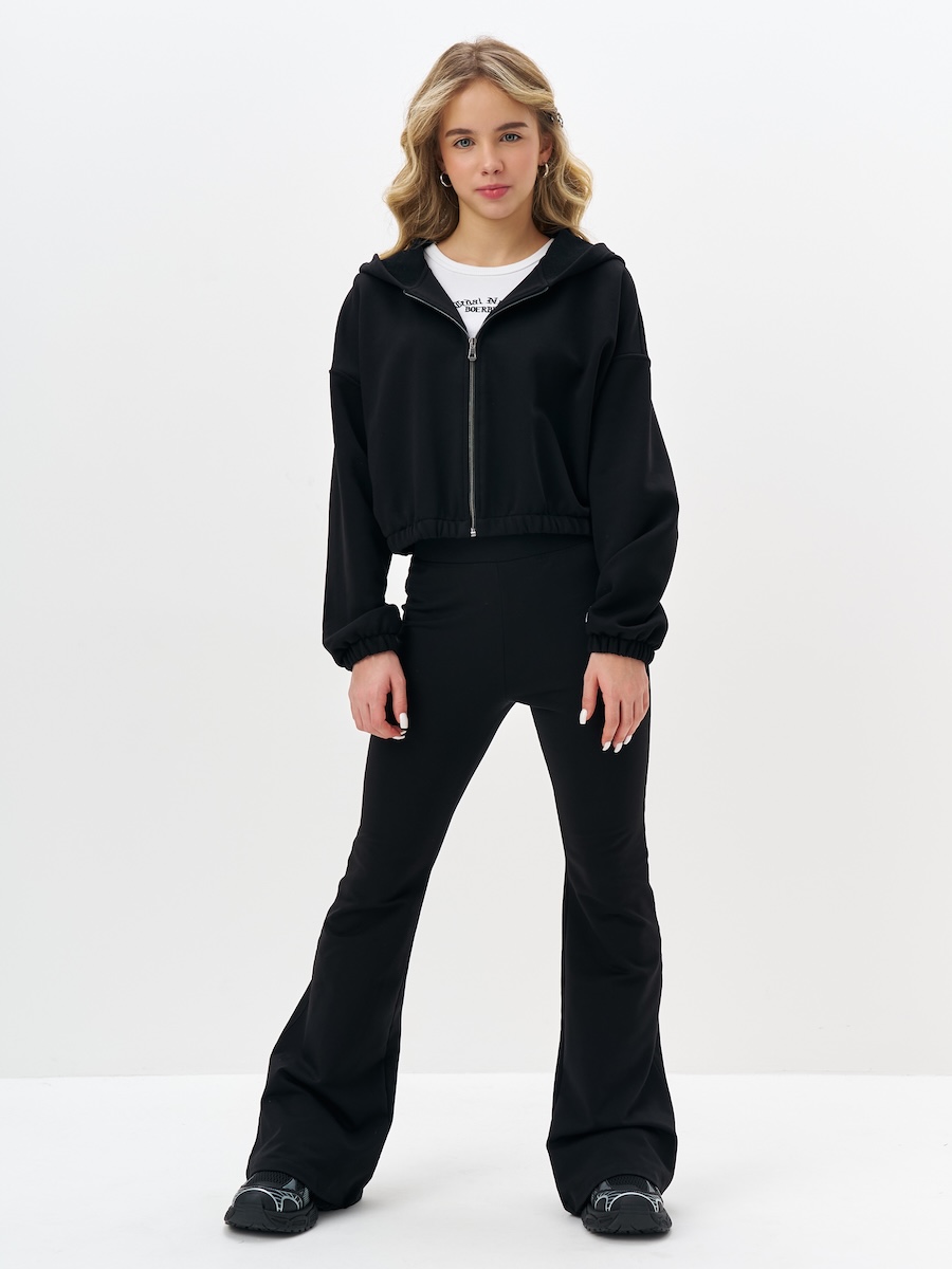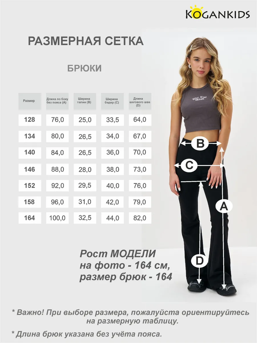 Брюки для девочки зауженые с расширением клёш к низу, выполнены из петлевого футера 95% хлопок 5% эластан, без карманов. С резинкой по талии.