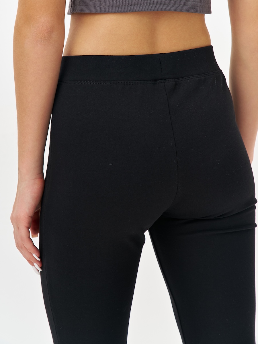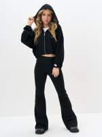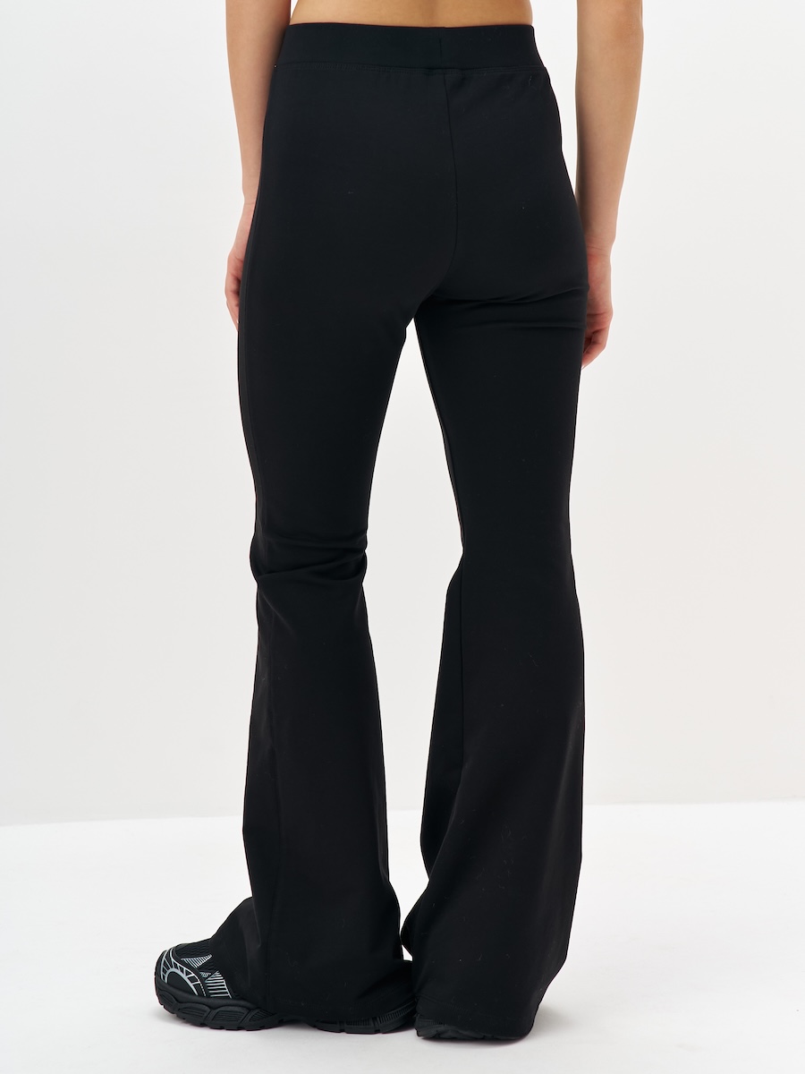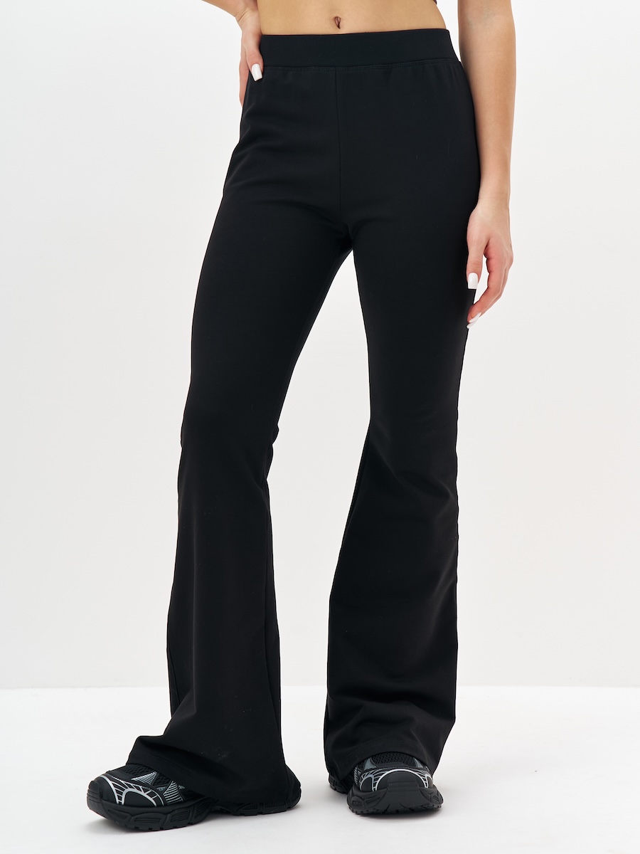 Брюки для девочки зауженые с расширением клёш к низу, выполнены из петлевого футера 95% хлопок 5% эластан, без карманов. С резинкой по талии.