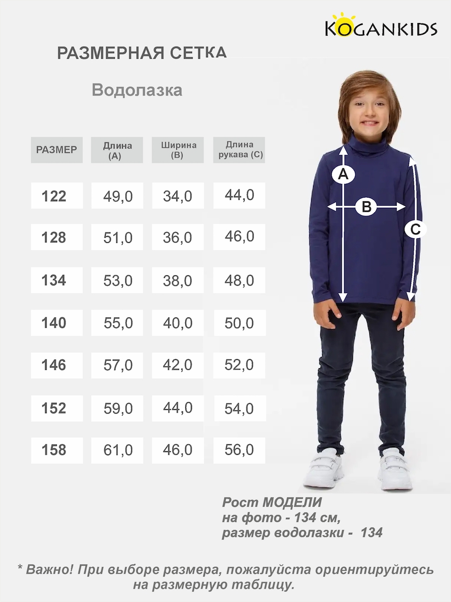 Водолазка для школы и повседневной носки, водолазка для малыша выполнена из высокачественного натурального хлопка с небольшим добавлением эластана. Водолазка для школьников KoganKids имеет ОЧЕНЬ УДОБНУЮ горловину, которая позволяет легко одевать и снимать её, но при этом максимально комфортно облегает шею ребёнка при носке. Водолазка для мальчиков школьная отлично тянется, что способствует удобной и комфортной посадке на ребенке и свободе движения. Не деформируется и не растягивается в процессе эксплуатации и после стирки.