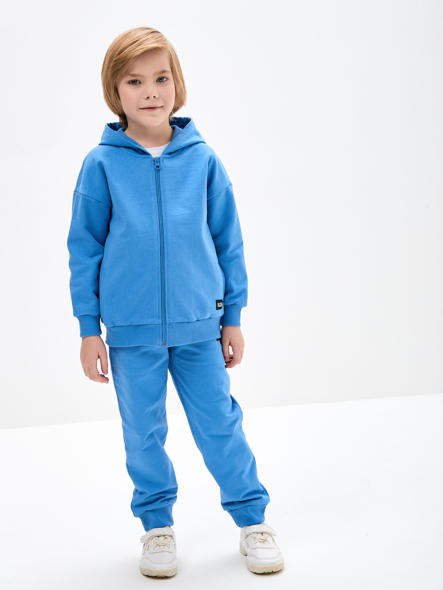 Худи детское с капюшоном и карманами, на застежке молнии, выполнено из петлевого футера 100% хлопок, 370 г/м. К толствке подходят брюки выполненые из аналогичного полотна