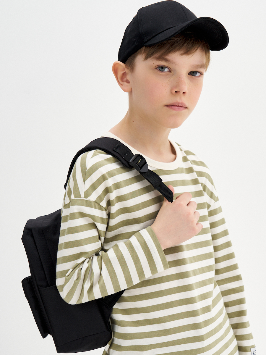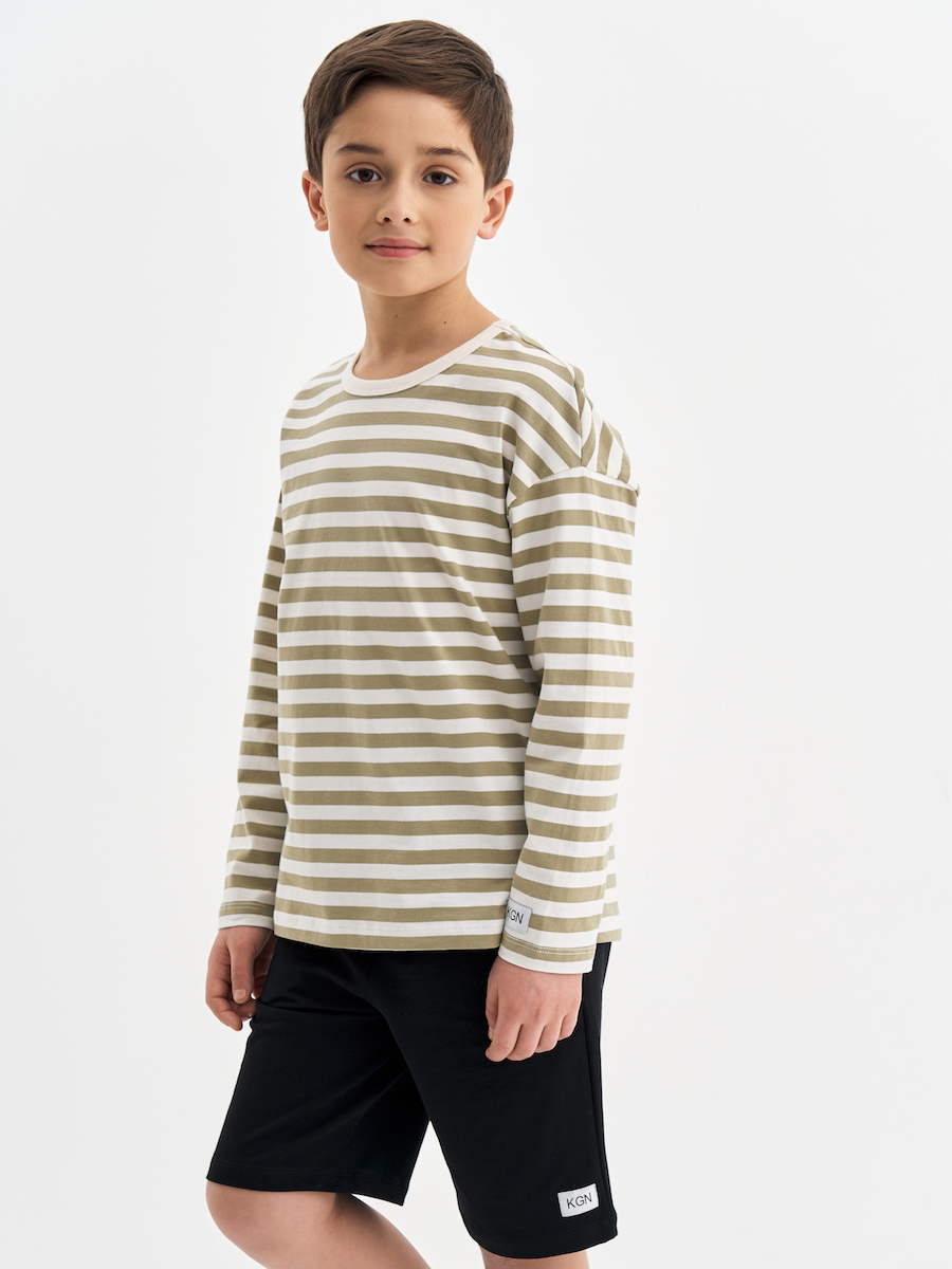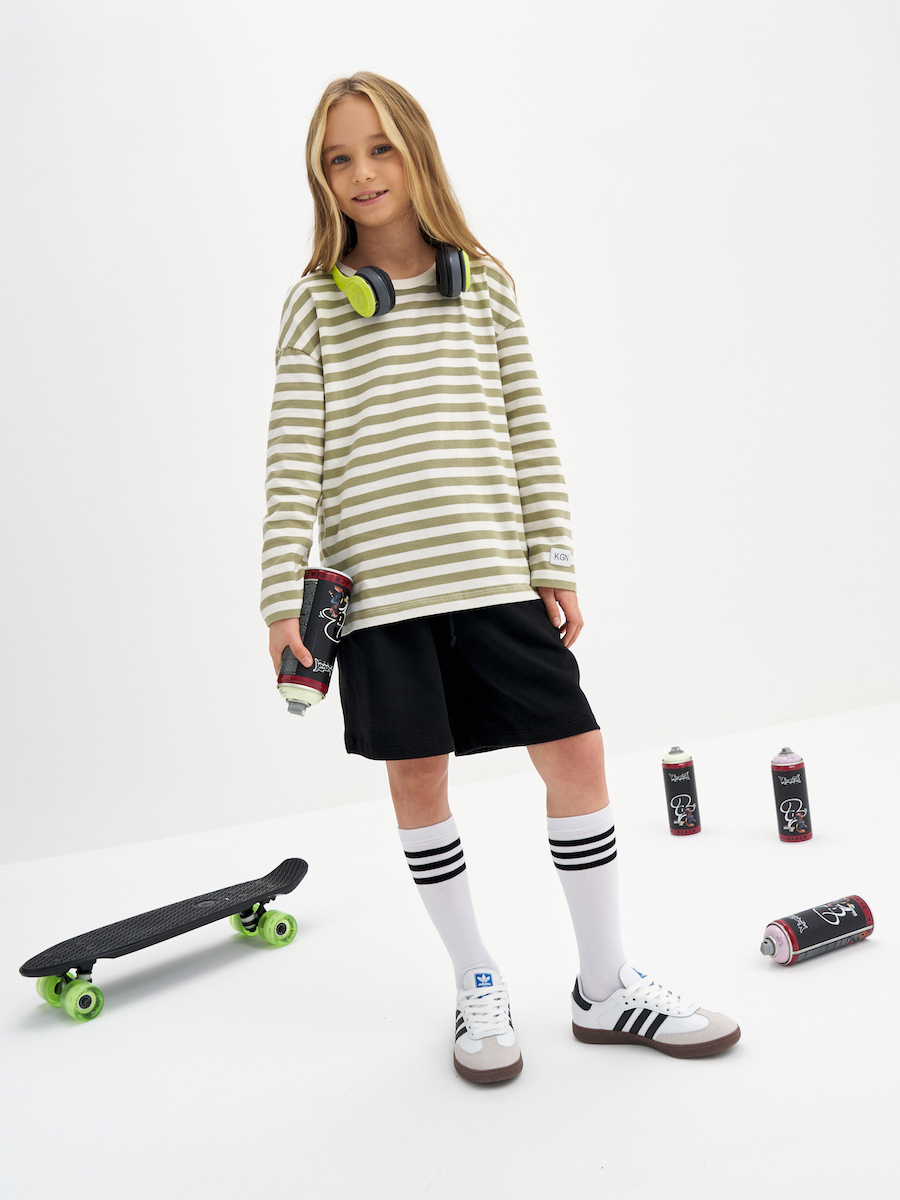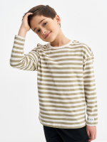 Футболка оверсайз с длинным рукавом для девочки, в стиле тельняшка, выполнена из полотна кулирная гладь