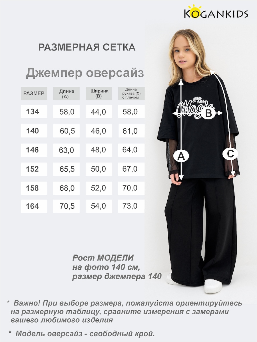 Лонгслив для девочки оверсайз из кулирной голади с принтом, рукава комбинированные с сеткой