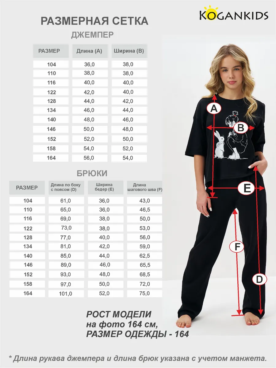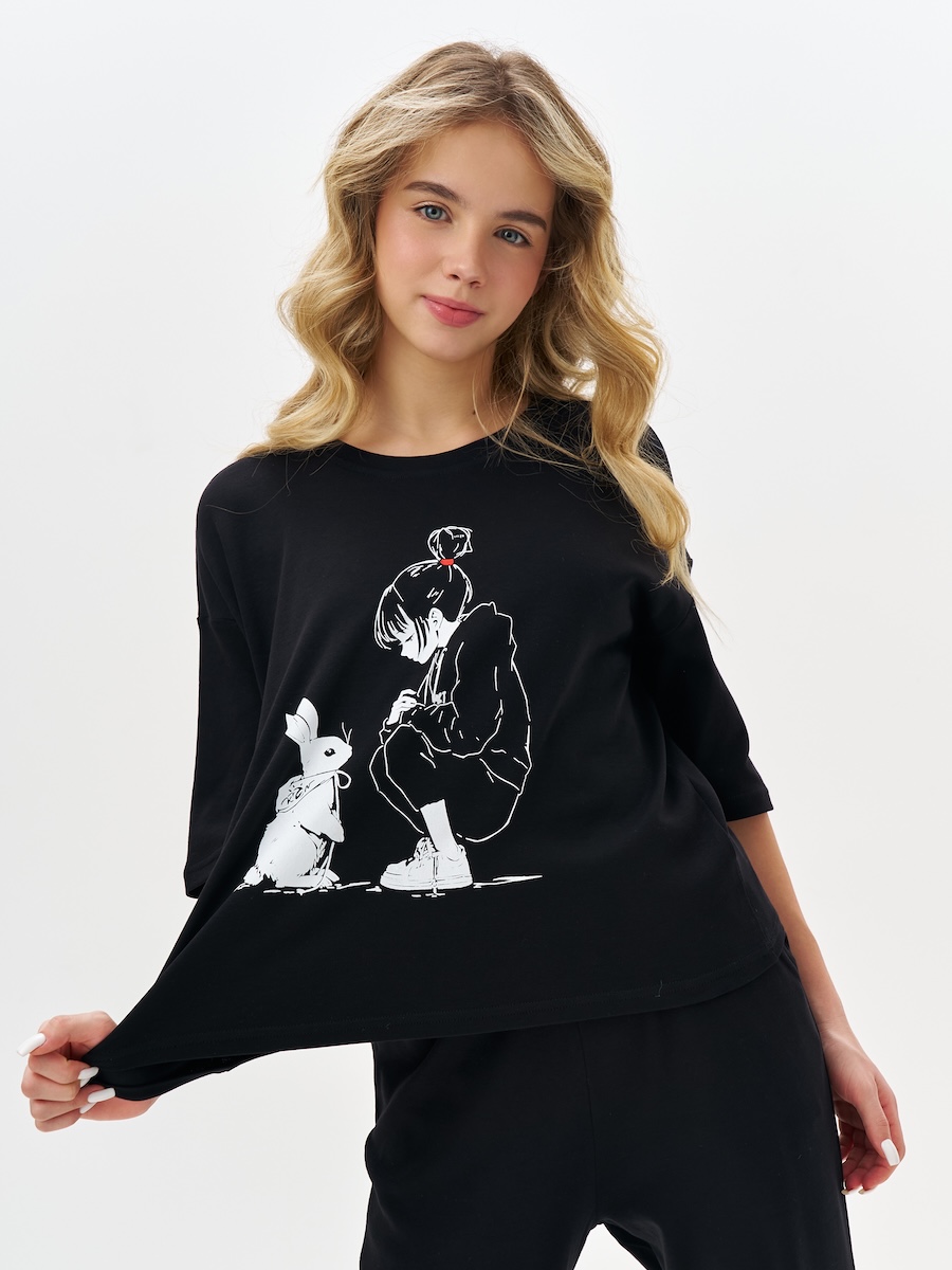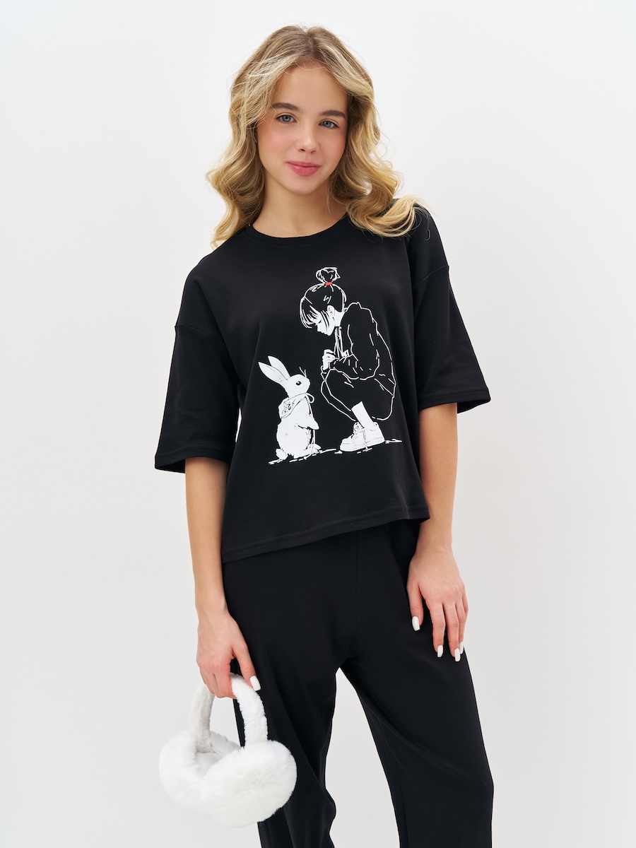 Черная пижама для девочки с принтом
