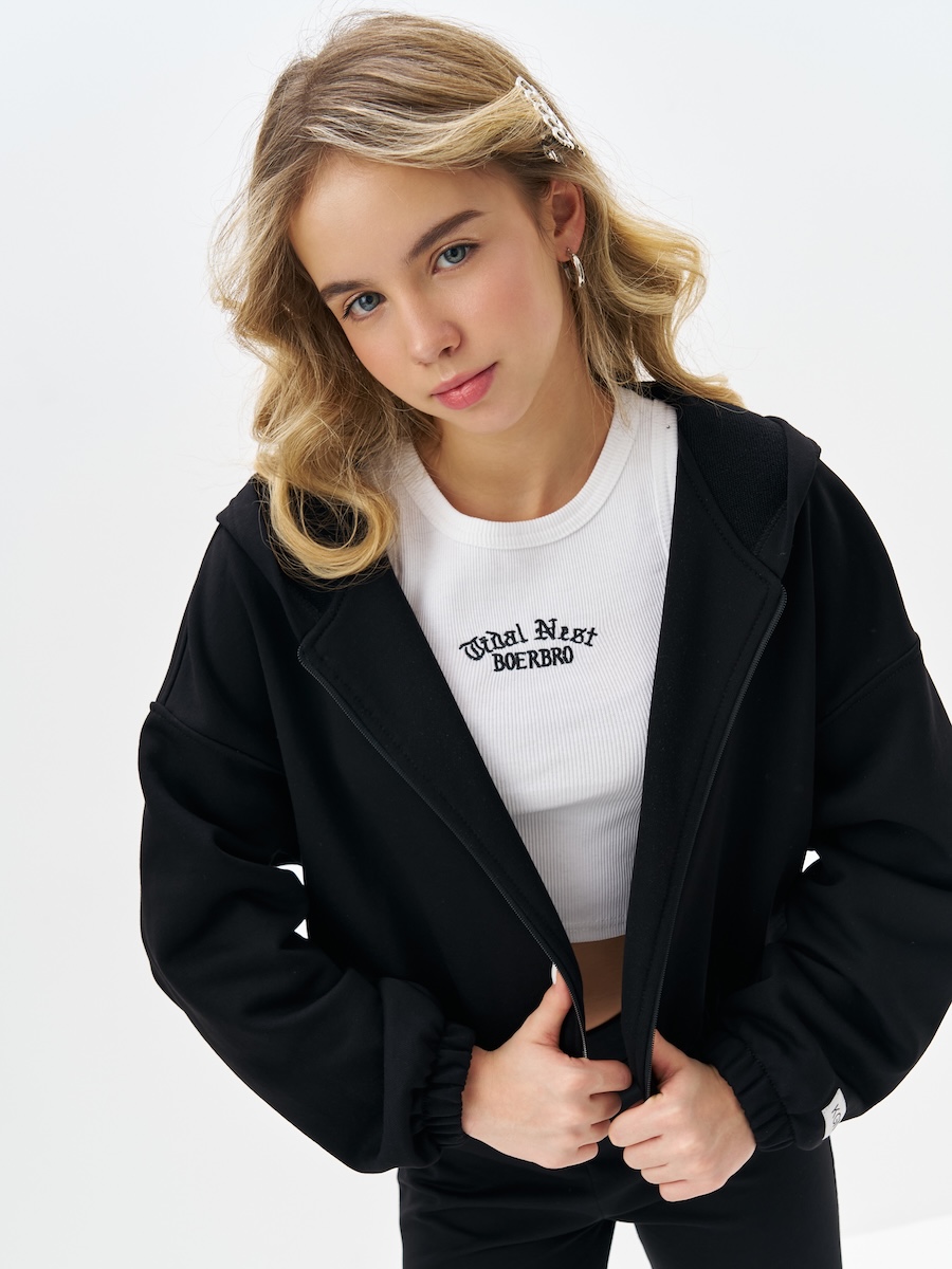 Черная укороченная толстовка для девочки